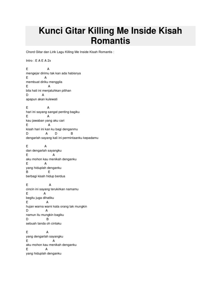 Kunci Gitar Killing Me Inside Kisah Romantis Pdf